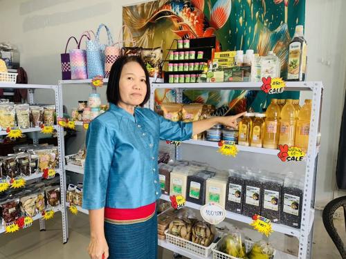 ณ ร้านวิสาหกิจชุมชนคนรักวังตะเคียน ในปั๊มปตท.บ้านใหม่ ตำบลบางขวัญ อำเภอเมืองฉะเชิงเทรา จังหวัดฉะเชิงเทรา